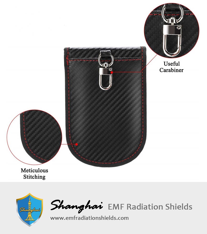 Faraday bag is constructed with premium carbon fiber textured material and two-layers of shielding materials packed in a gift box. It provides signal blocking functions as well as a luxurious fashionable appurtenance